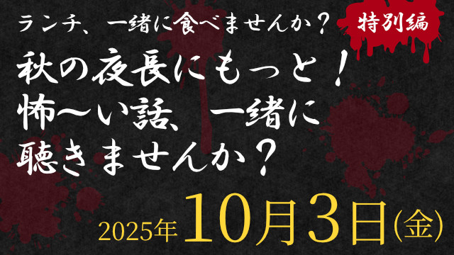 【10/1:募集期間延長!】 ランチ、一緒に食べませんか?特別編 ~秋の夜長にもっと!怖~い話、 一緒に聴きませんか?~<9/22>